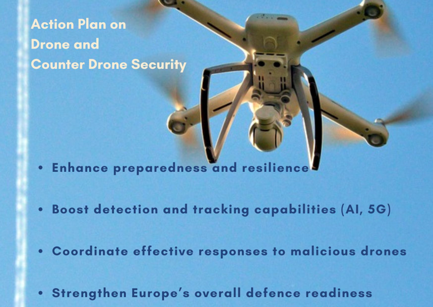 Action Plan on Drone and Counter Drone Security, presented in 11th Febryary by The European Comission, has four goals: enhance Europe’s preparedness and resilience against drone incidents, leverage technologies and 5G networks to better detect drones, reinforce responses to malicious drone activity and strengthen Europe’s defence readiness against drone threats. Recent incidents related to malicious or irresponsible use of drones have exposed growing security challenges for the Union. This Action Plan is the Commission’s response to calls from Member States and the European Parliament for a united approach to combatting threats.